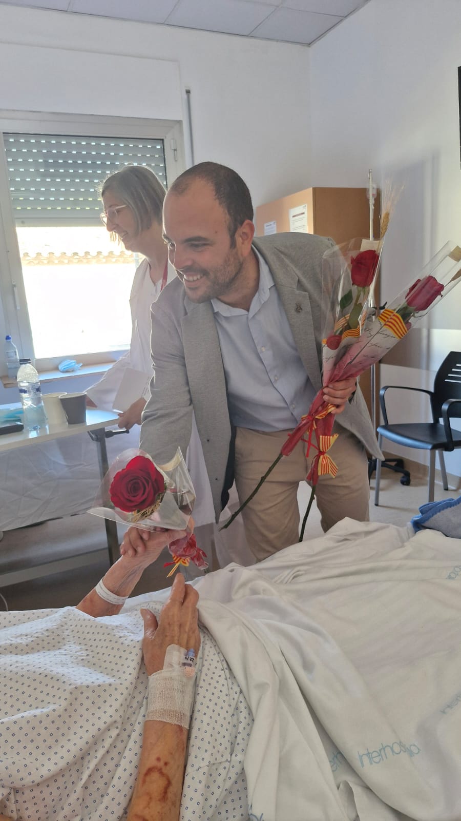 La direcció de l’Hospital ha fet arribar avui, Diada de Sant Jordi, una rosa solidària als professionals que estaven treballant a l’Hospital, al Centre de Dia Indaleci Losilla i al Centre Sociosanitari Verge del Puig.