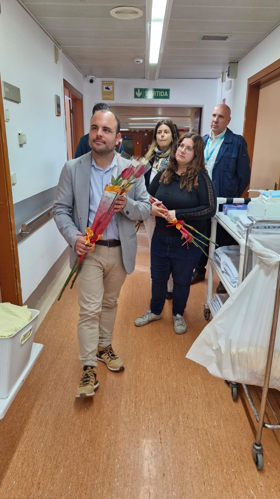 Turisme, Sandra Navarro, i del Regidor de Cultura, Albert Planas, han fet entrega d'una rosa a tots els pacients dels centres de l'Hospital de Sant Celoni.