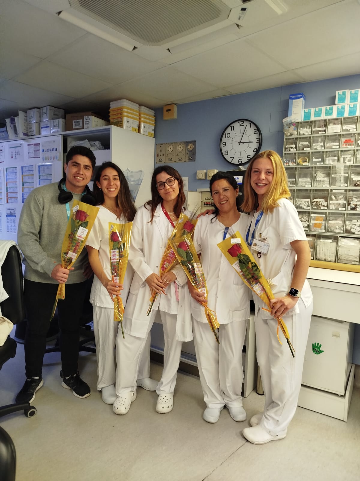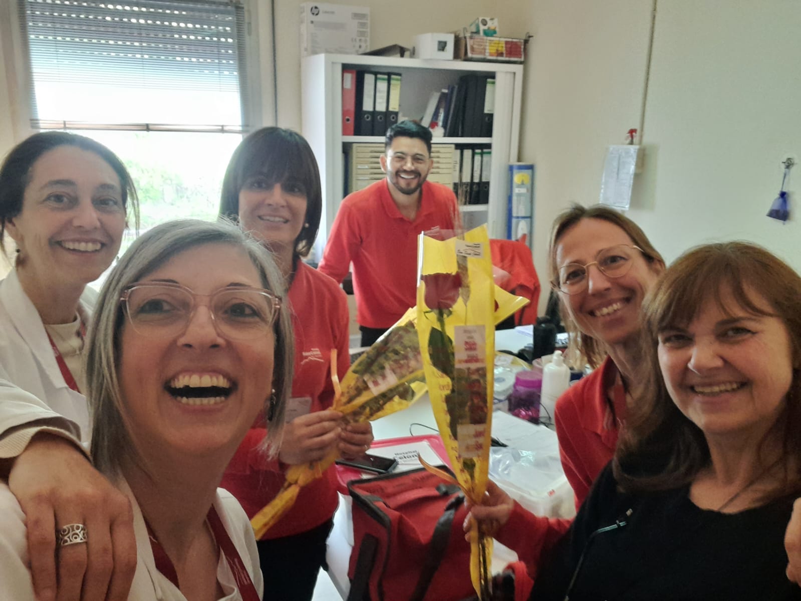 Rosas solidarias para el personal de la institución.